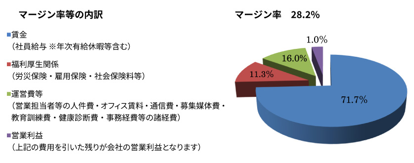 弊社マージン部分については、下記のとおり福利厚生関係、運営経費等を含んだものです。
